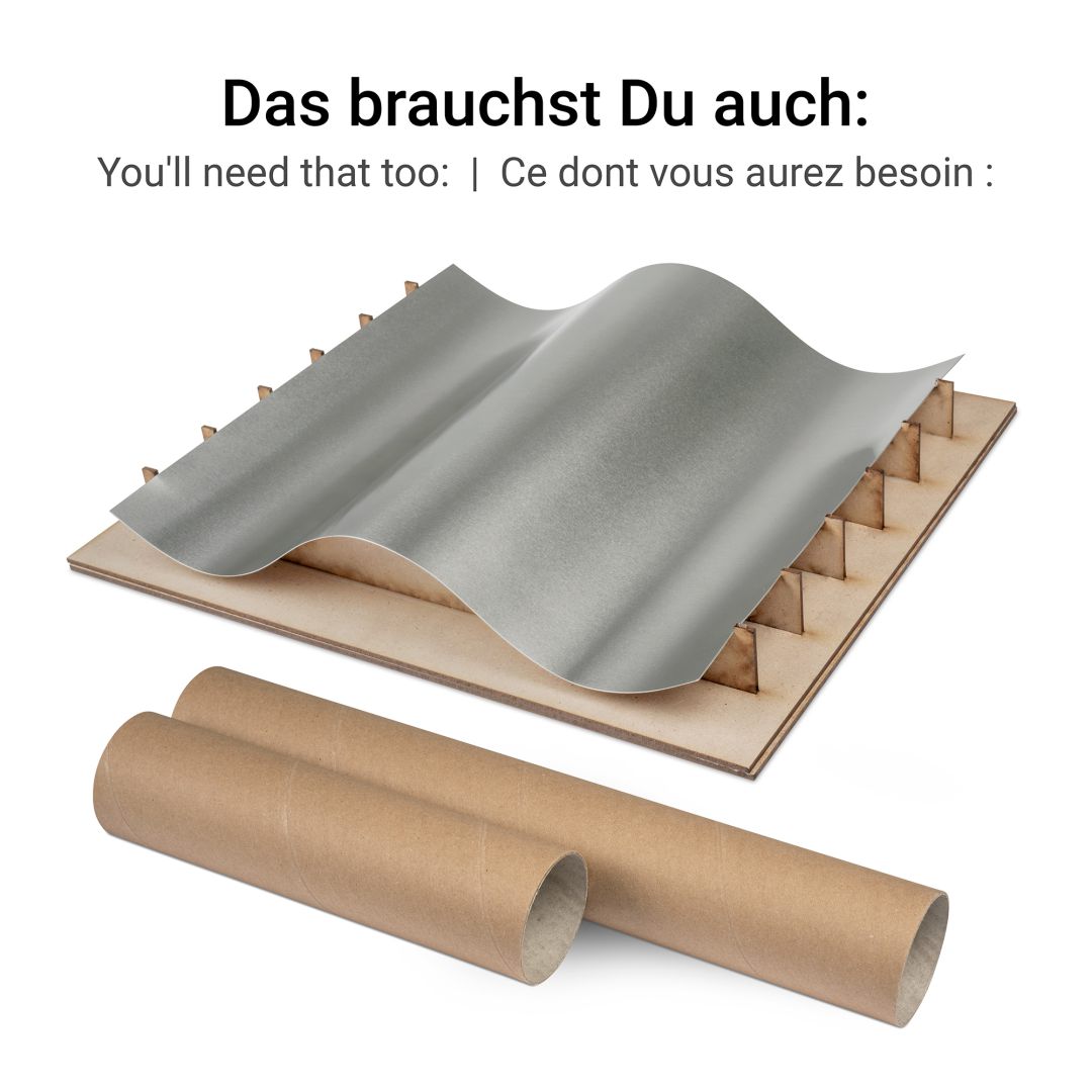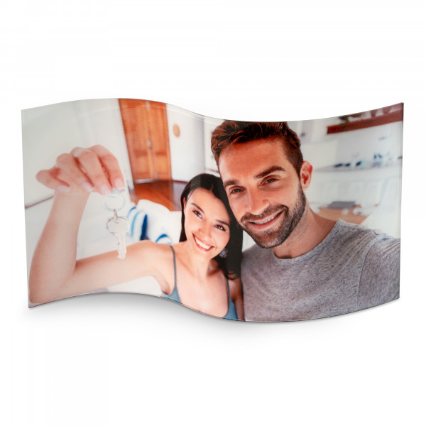 So funktioniert es: Erstelle den Ausdruck mit Deinem Sublimationsdrucker und verpresse diesen mit der Acrylplatte (Art-Nr. EFA-). Lege die Acrylplatte sofort nach dem Verpressen in die Form (Art-Nr. EFAJ-). Diese verleiht der noch heißen Acrylplatte die geschwungene Kontur. Um eine möglichst gleichmäßige Formgebung zu erreichen, empfehlen wir, die heiße Acrylplatte unter Verwendung der Pappkartonrolle EFAJ-CBR- leicht in das Jig (EFAJ-) einzudrücken. Abkühlen lassen, fertig! Die Acrylplatte hat sich der Form angepasst und Du hast jetzt ein einzigartiges 3D Fotopaneel angefertigt.