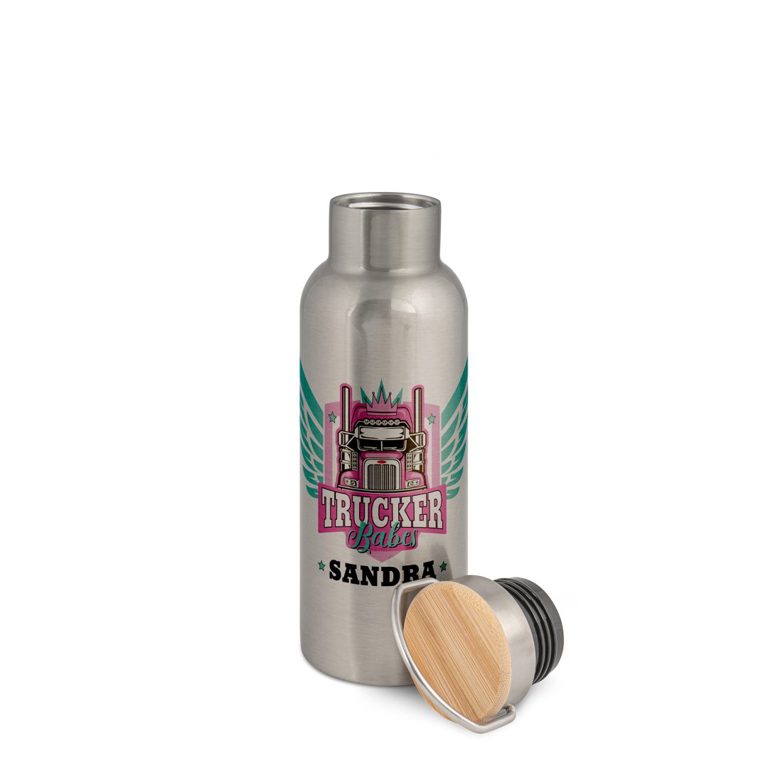 Edelstahl-Thermoflasche mit Bambusdeckel 500 ml