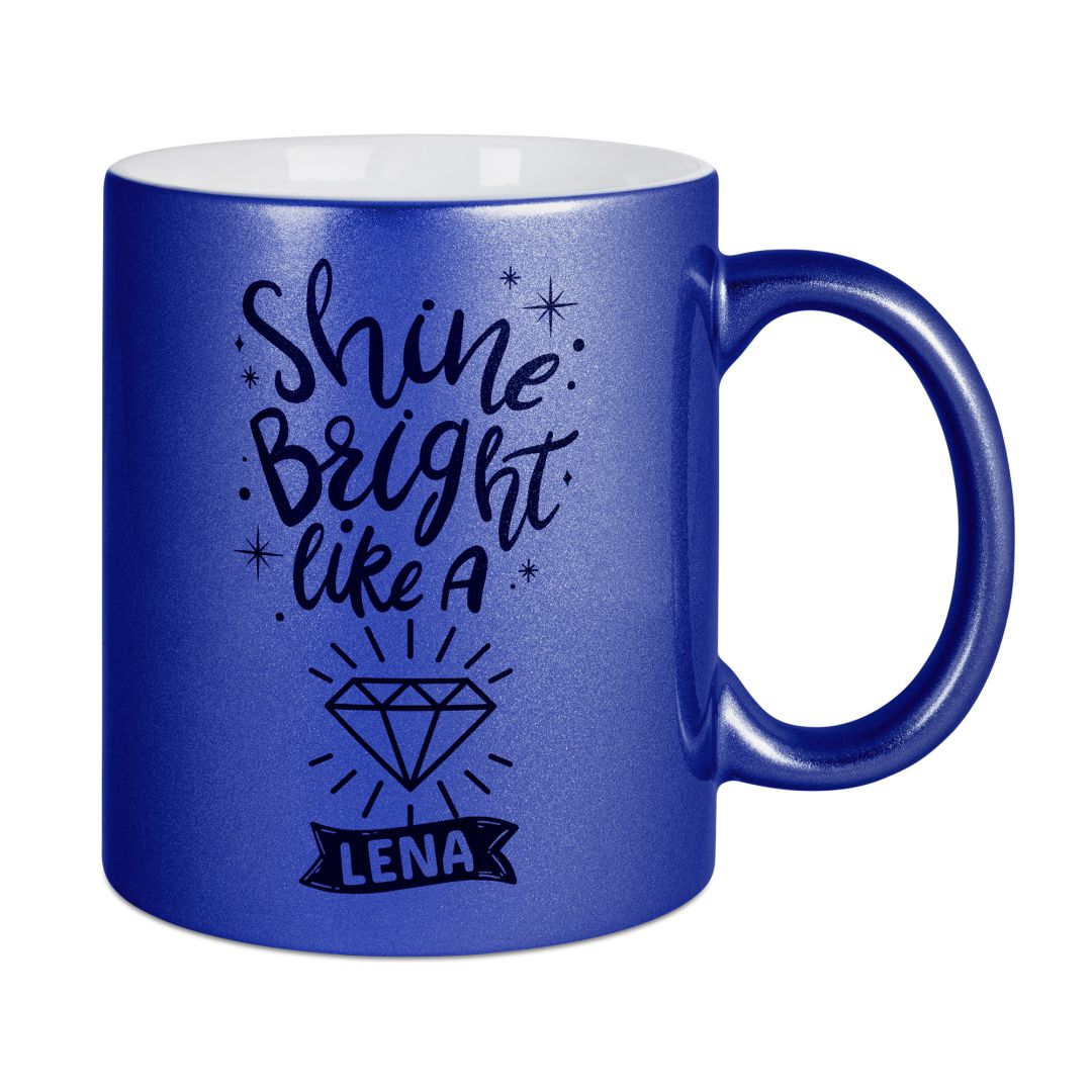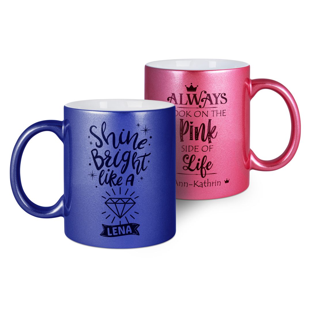 Diese Variante der beliebten Tassenform LENA ist die Perle unter den Sublimationstassen. Ihre Oberfläche ist angenehm glatt und samtartig weich zugleich. Das kräftige Lavendelblau schimmert mit einer besonderen Tiefenwirkung im Perlmutteffekt. Durch das Spiel mit dem Licht entstehen magische, sanfte Farbübergänge und ein leicht metallischer Glanz.